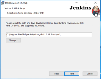 - After the download has completed, run the jenkins.msi file and proceed with the installation. Some information for the following installation steps: