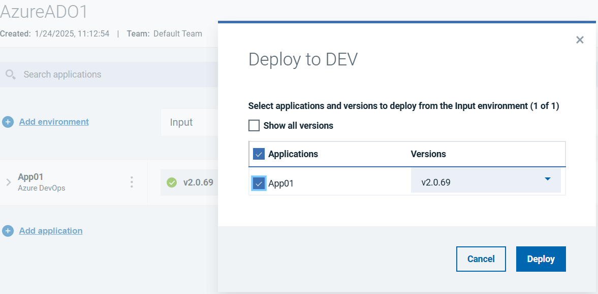 To orchestrate the deployment from HCL DevOps Velocity, select the version using the deploy option as show in the below picture.