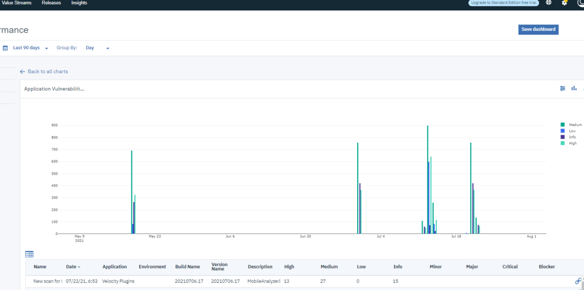 The following image shows the ASoC scan results in the Insights section of DevOps Velocity after the successful plug-in integration.