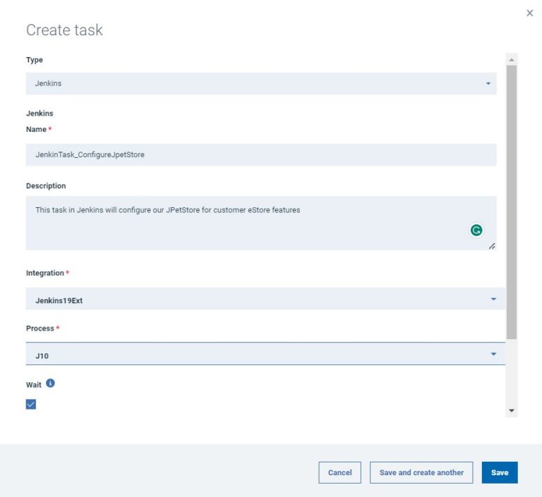 - Click Save and create another to save the task and create another task.
