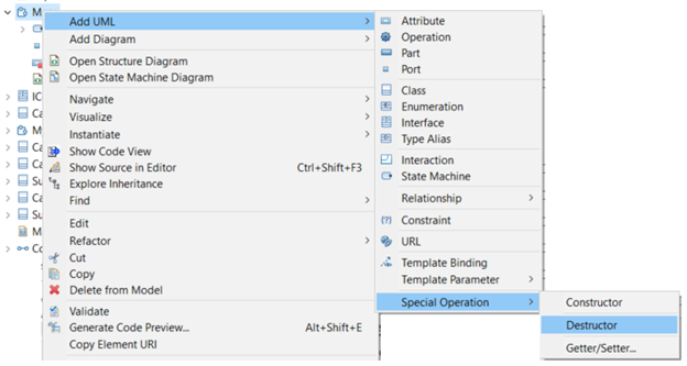 A new command is available in the Add UML - Special Operations context menu for more easily creating a capsule destructor.