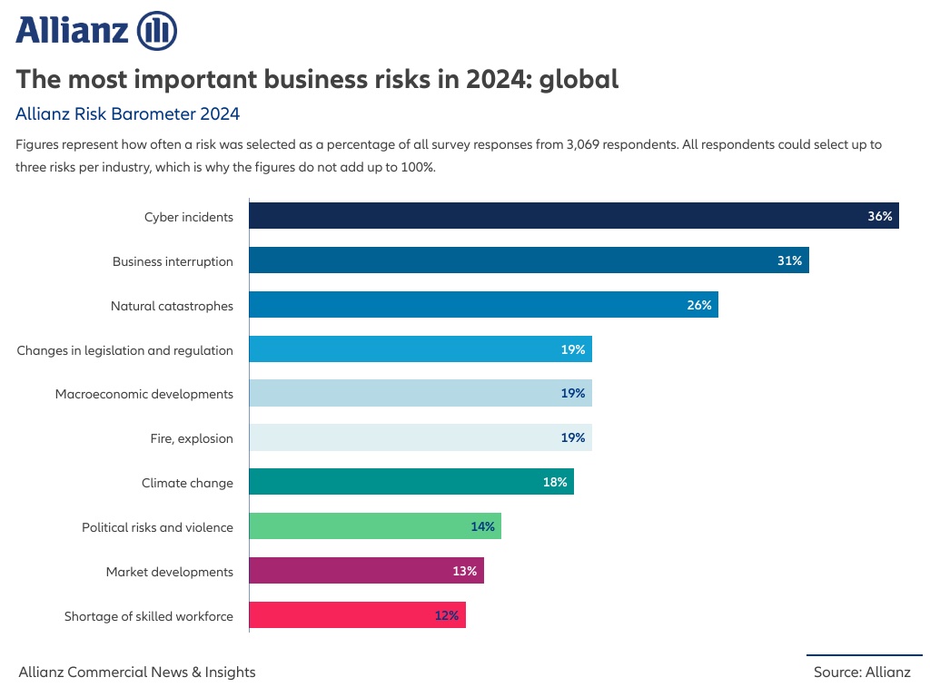 In January 2024, Allianz published their 2024 Risk Barometer and cyber incidents now top the list!