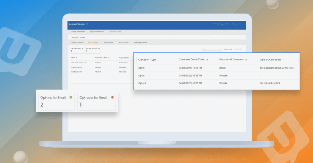 In the age of privacy rules and regulations, you need to be cautious about customer data and preferences. To manage this, you need a tool that can capture the audience’s consent and their preferences. So, we thought of introducing one for you in Unica. We are introducing “Customer Consent” in Unica, which will allow you to capture audience consent. The Customer consent module will be available inside the Contact Central. This customer consent will give you an option to capture the consent for communications like Whatsapp/SMS/Email/Push enabling you to have better control over your communications. Customer Consent is a new module in Contact Central that enables you to do an audit on the data they have collected. You can use it to track down which audience should receive certain information based on their consent – no matter how many different marketing campaigns you’ve sent them in the past.