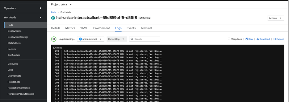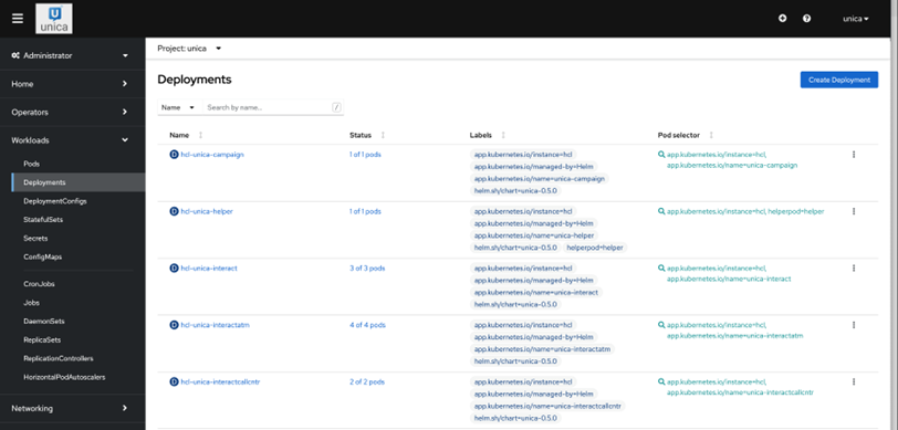 - Run helm upgrade command: helm upgrade unica hcl-unica -n project
