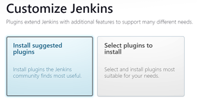 - On the Customize Jenkins dialog box, to have Jenkins automatically install the most frequently used plug-ins, click Install suggested plugins.
