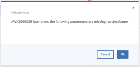 The button at the end of the panel called Validate Input allows user to validate all input entered. If one of them is incorrect or missing, a popup shows the relative error. For example: