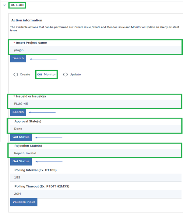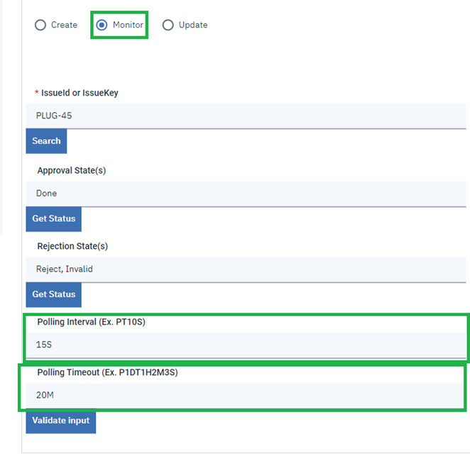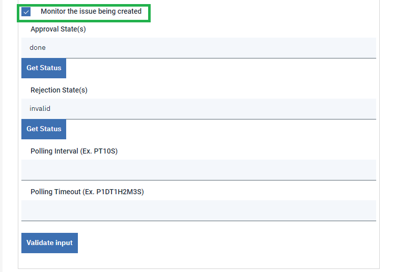 - Timeout if the issue has not reached any status in the specified time inserted in Polling Timeout