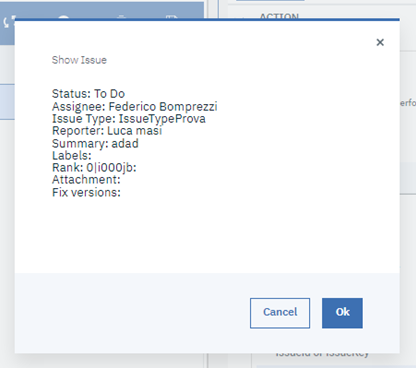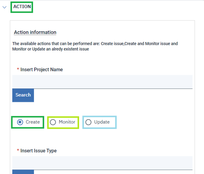 In the panel ACTION, if you choose Create operation, you can create a new issue.