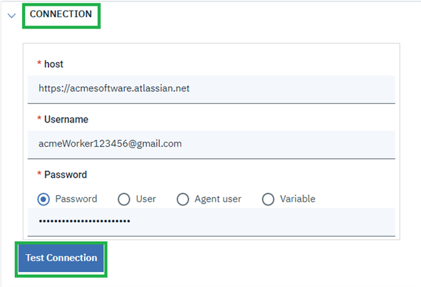 The button “Test Connection” allows you to check if the entered Jira credentials are correct. The button shows a popup that shows the result of the Test connection.