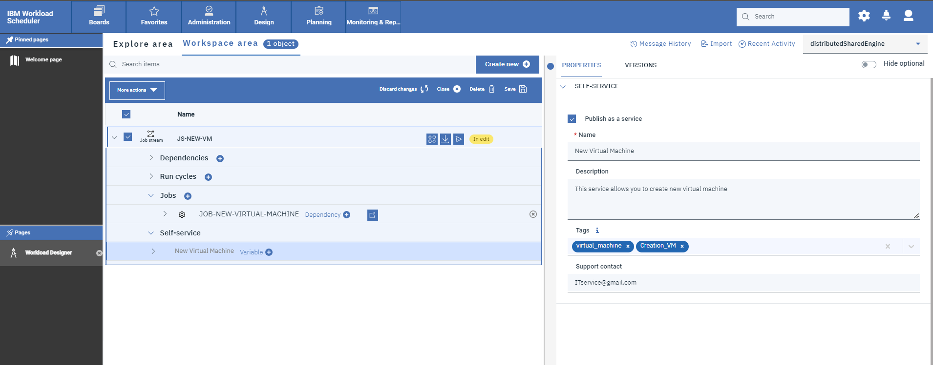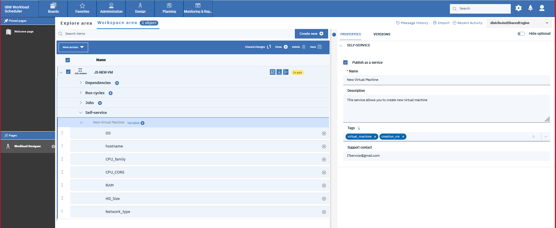 The scheduler can now define services directly from the Workload Designer by marking a job stream as a service and specifying the parameters. Everything defined in a job stream can be done with a service.