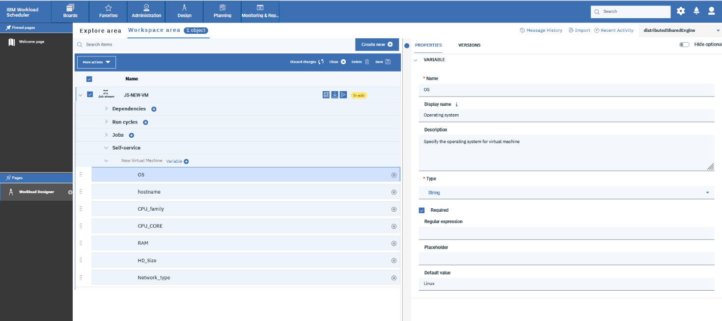 Let’s say Philip, the scheduler, needs to create a job stream to request the creation of a new virtual machine, and a service with variables corresponding to the fields that the Self-Service Catalog user must complete.