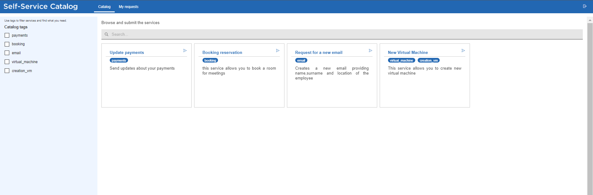 To find the service she needs, she can use the search bar or filter the services by using the tags.