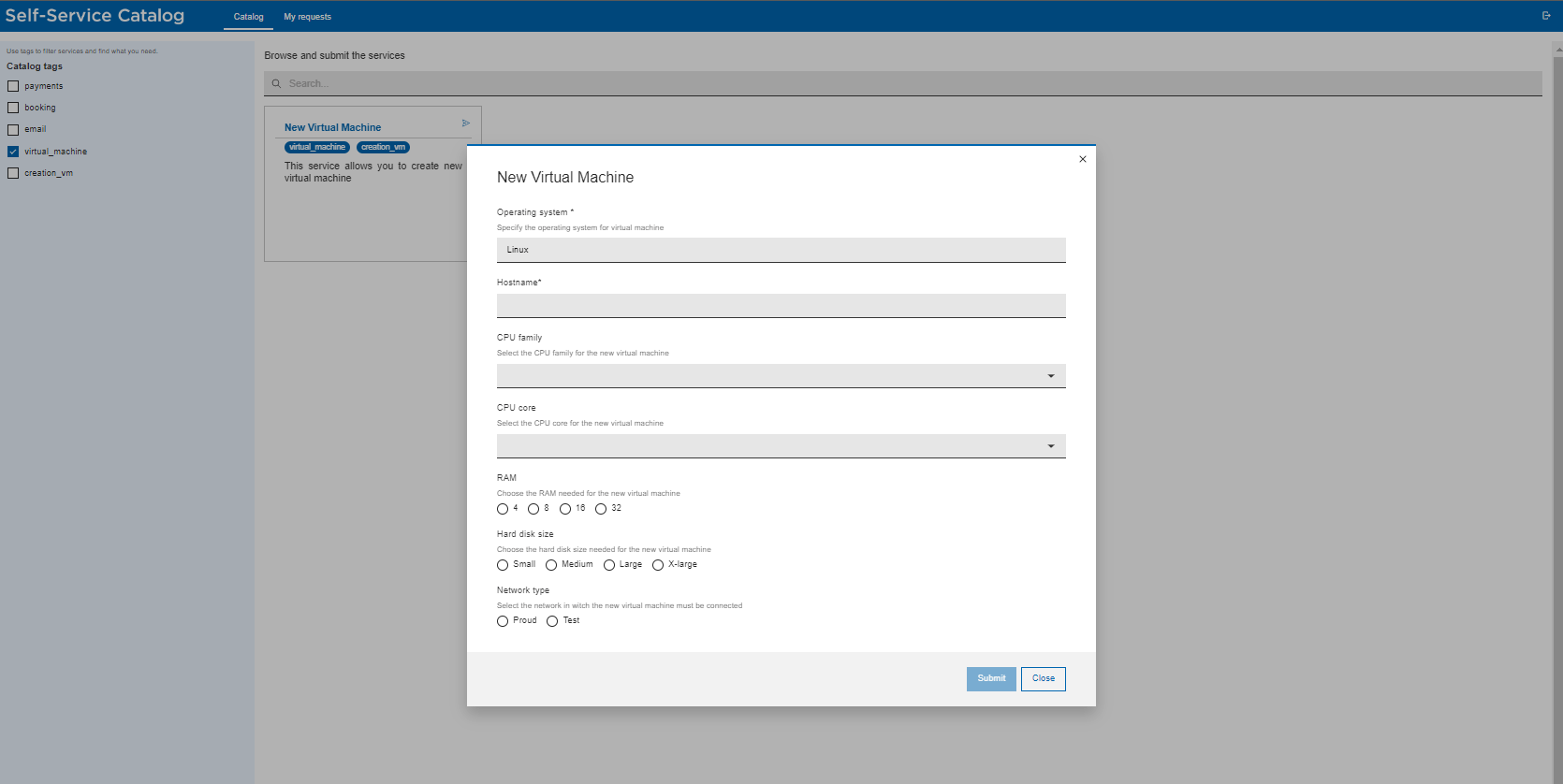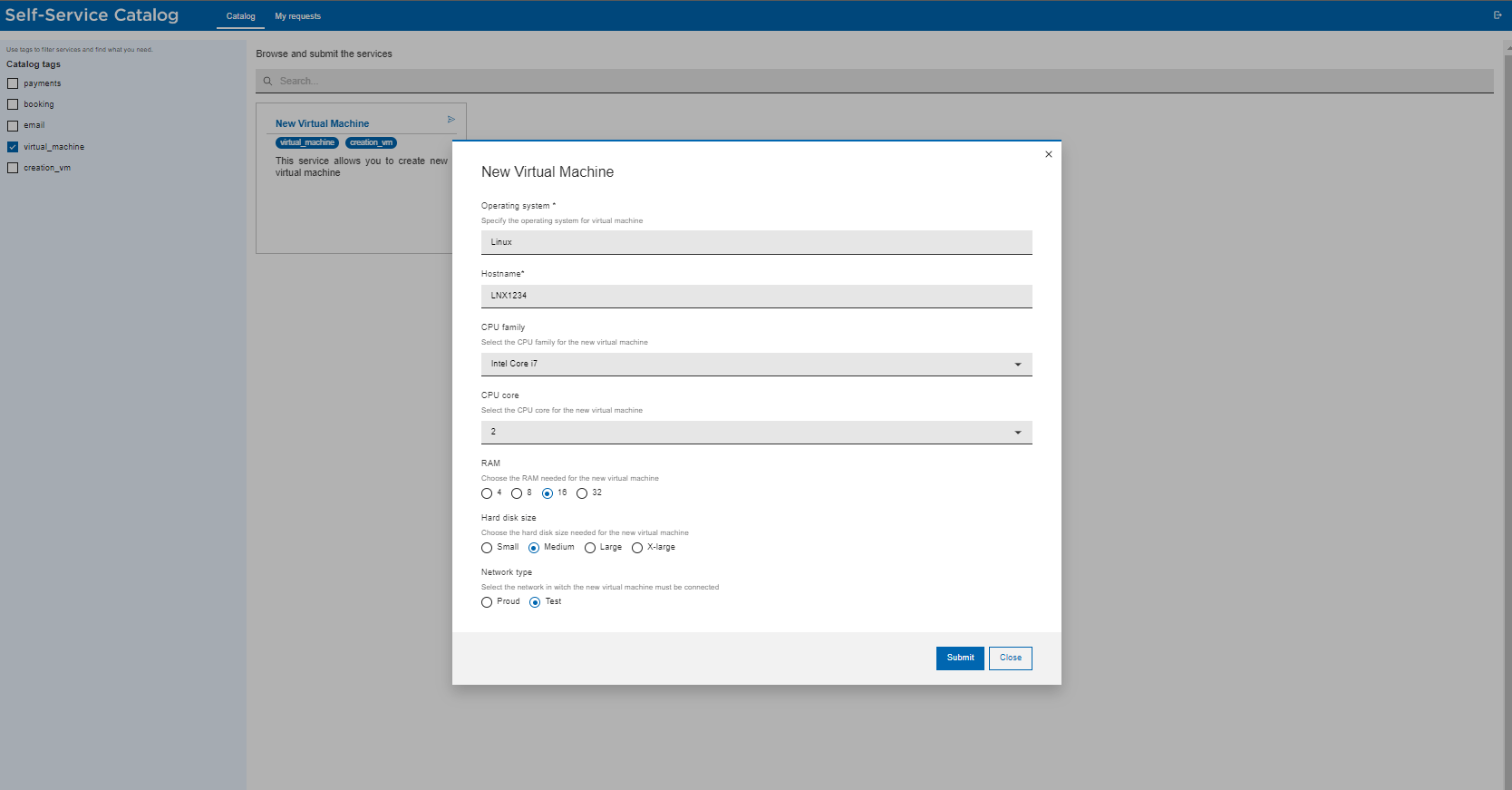 To see how this works, let’s look at an example: creating a service to request a new virtual machine.