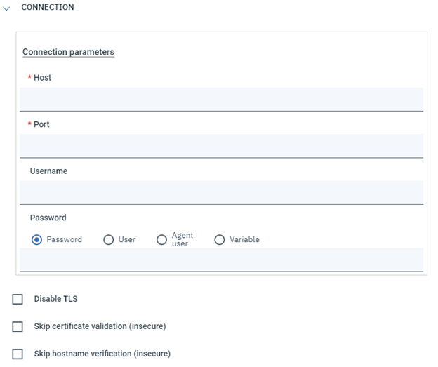 - Skip certificate validation: if checked, then the certificate validation will be skipped. Be aware that doing this is insecure.