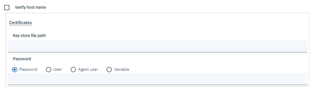 If needed, you can provide a path to a .jks keystore with the corresponding valid password, and also verify the hostname by ticking the checkbox.