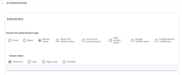 2. Bearer token authentication: You can choose this option if one or both REST calls need it by manually providing the bearer token.