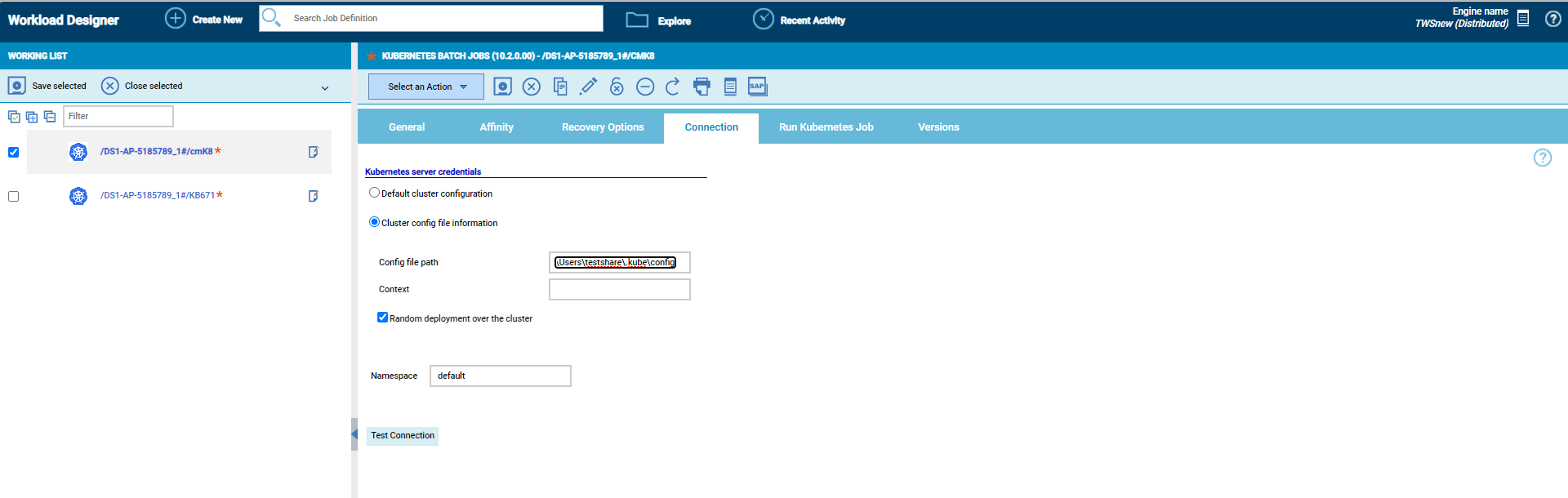 The Kubernetes plugin in Workload Automation can now be used to submit a K8 job to the cluster and see its progress without having to move to the cluster environment or be familiar with all the Kubernetes commands once the connection to the cluster has been established.
