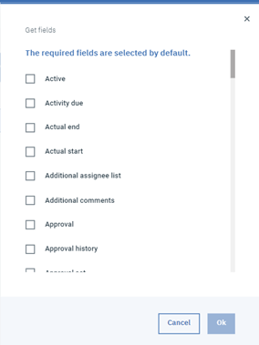 Alternatively, if you do not know what the mandatory fields are, the “Get Fields” button will provide a list of all the fields, with the mandatory fields (if any) selected by default.