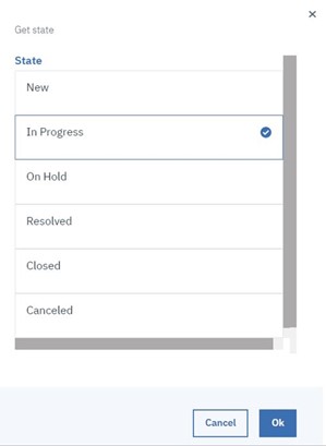 As you can see, the states in this example are inserted as numbers, whereas in Figure 8 they are inserted as strings; this is possible because both formats are allowed. You can also mix them up by writing “2, resolved” or “on hold, 7” (which are four different states). Of course, these values have to be coherent to the instance you are using.