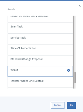 Figure 5: Creation of a task (in this example, a ticket)