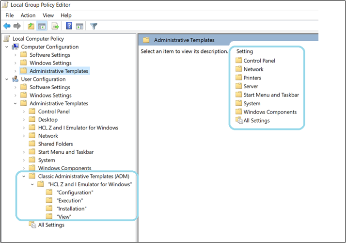 - A new tree structure with name Classic Administrative Templates (ADM) gets created.